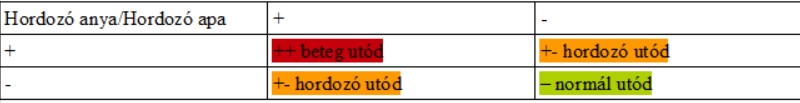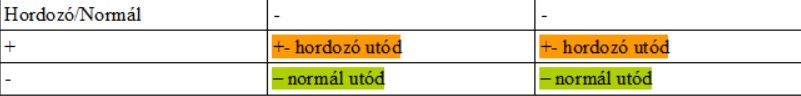 2.táblázat: egy hordozó és egy normál szülő várható utódai